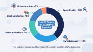 We ranked executive assistant staffing agencies on five weighted factors, from specialization to modern practices.