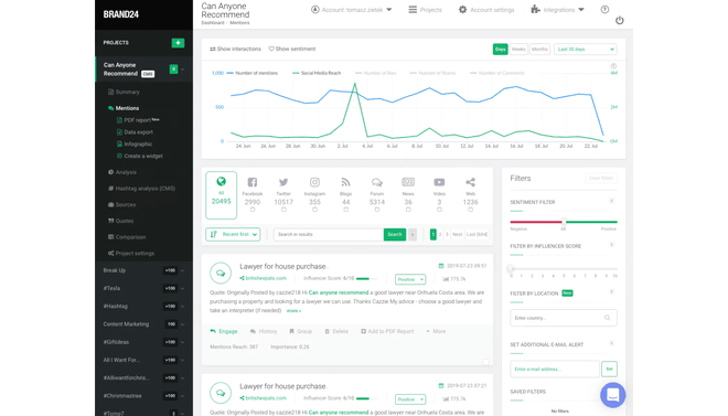 Brand24 AI Insights is a no-code social listening platform that lets you create comprehensive brand monitoring solutions for your business.