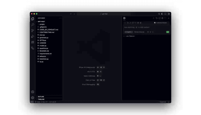 A conversational interface to ask questions, generate code, and debug errors, with support for multi-turn conversations.