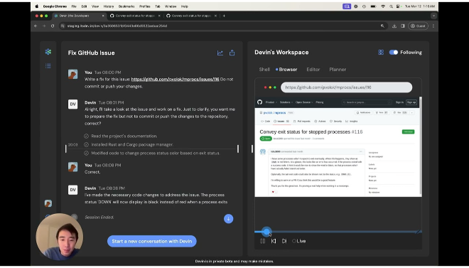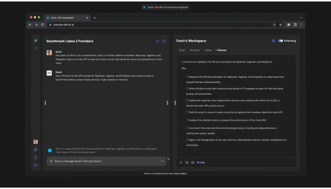 Cognition Labs, founded by former competitive programming champions, designed Devin to be a collaborative “teammate.” When prompted with a high-level goal (e.g., “Build a web-scraper and deploy it”), Devin springs into action. It formulates a plan, opens its virtual workspace, writes code, fixes its own bugs, and delivers a complete solution. This capability is poised to free human engineers from tedious, repetitive tasks, allowing them to focus on high-level architecture, creativity, and critical business problem-solving. Devin is set to accelerate project delivery, clean up legacy code, and dramatically lower the barrier to entry for non-technical founders.