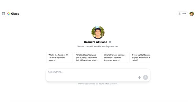 Glasp differentiates itself by transforming these curated insights into an active, searchable AI knowledge base the AI Clone. This personalized model learns from the user’s highlights and notes, providing context-aware summaries, generating new content, and fostering a unique social learning environment where users can share their findings and follow like-minded experts.