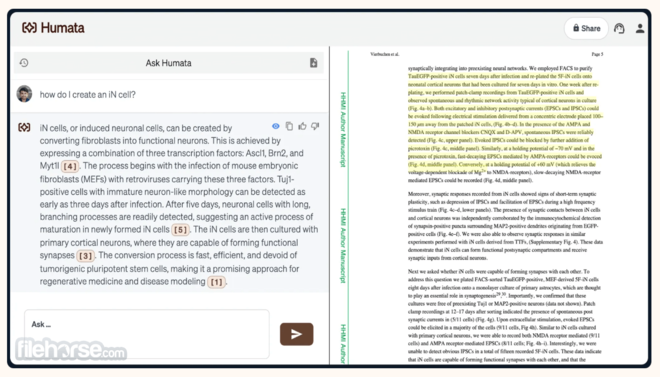 It is often described as the “ChatGPT of documents” because its core function is to allow users to converse with their files via a natural language chat interface. Humata achieves this by using Retrieval-Augmented Generation (RAG) to ensure every AI-generated answer is cited directly with page references from the uploaded documents.