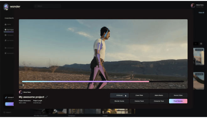 Wonder Studio AI is renowned for its disruptive efficiency in the VFX pipeline.Its core strength lies in automating 80% to 90% of the traditionally laborious and expensive tasks—motion capture, tracking, and lighting—from simple, single-camera footage.