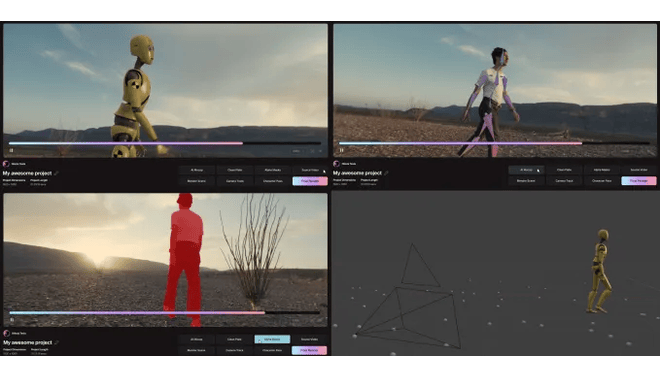 Provides editable output (MoCap, Clean Plate) ensuring artists can refine the AI-generated elements in professional software.
