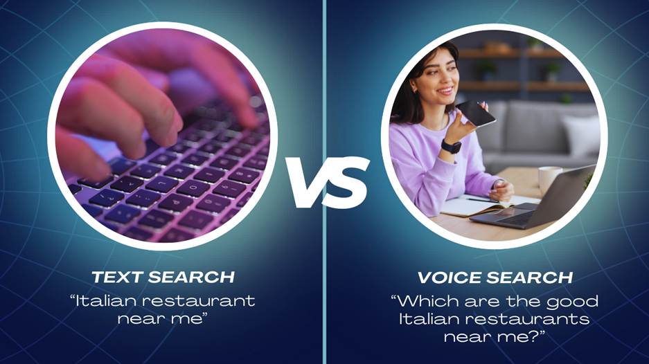 Text searches are short queries like ‘banana bread recipes’, while voice searches have full questions like, ‘How do I make homemade banana bread?’. Voice queries are more conversational and often signal purchase intent.